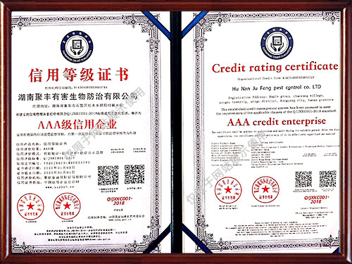 公司曾获得多种荣誉资质证书,所有施工人员经过专业培训且经过国家相关部门考核认证,能够为广大客户提供一流的除虫技术服务,为保障客户拥有一个健康、清洁、安全、舒适的工作和生活环境提供了保障。